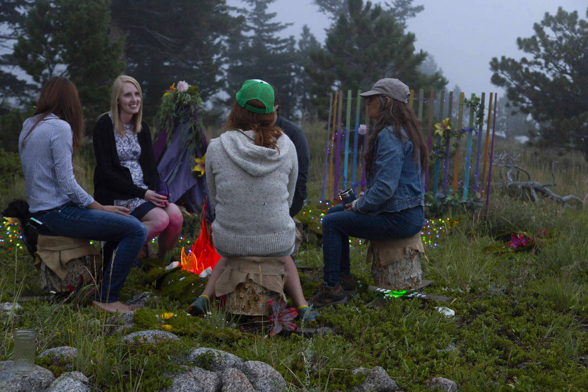 For our master’s thesis project, I came together with three classmates to create Joy Dept. We all share the interest of learning how people use and interact in public spaces, and we have a goal of wanting to inspire joyful human interactions. We decided to do this by merging a public art installation with an interactive experience that encourages human connection through curiosity and delight. This one of a kind interactive installation, themed like a campsite, builds and scales as more people participate.